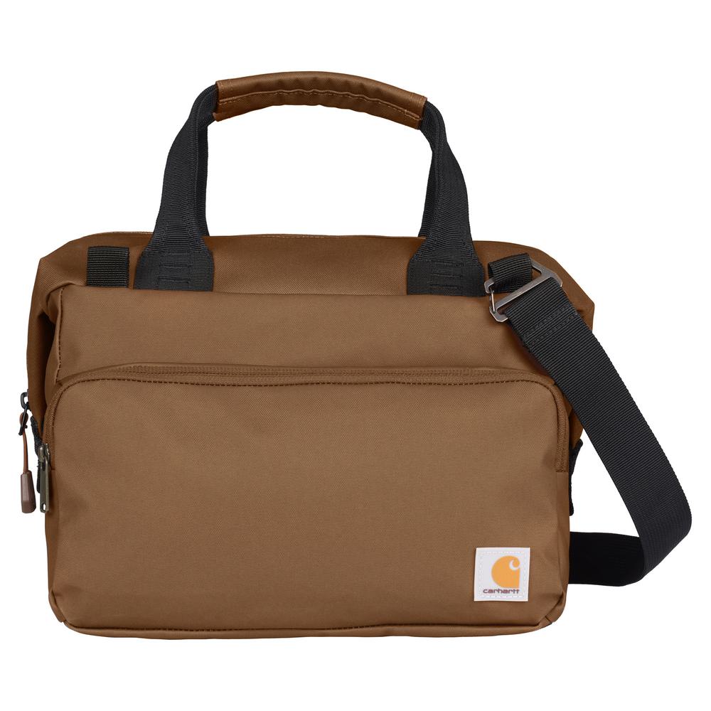 This Carhartt lunch cooler keeps food and beverages cold for 12+ hours. It's made with thick foam insulation and a PEVA lining for easy cleanup. A wide opening offers easy access to drinks and snacks. It comes equipped with a custom bottle opener and a padded shoulder strap that's removable and adjustable.