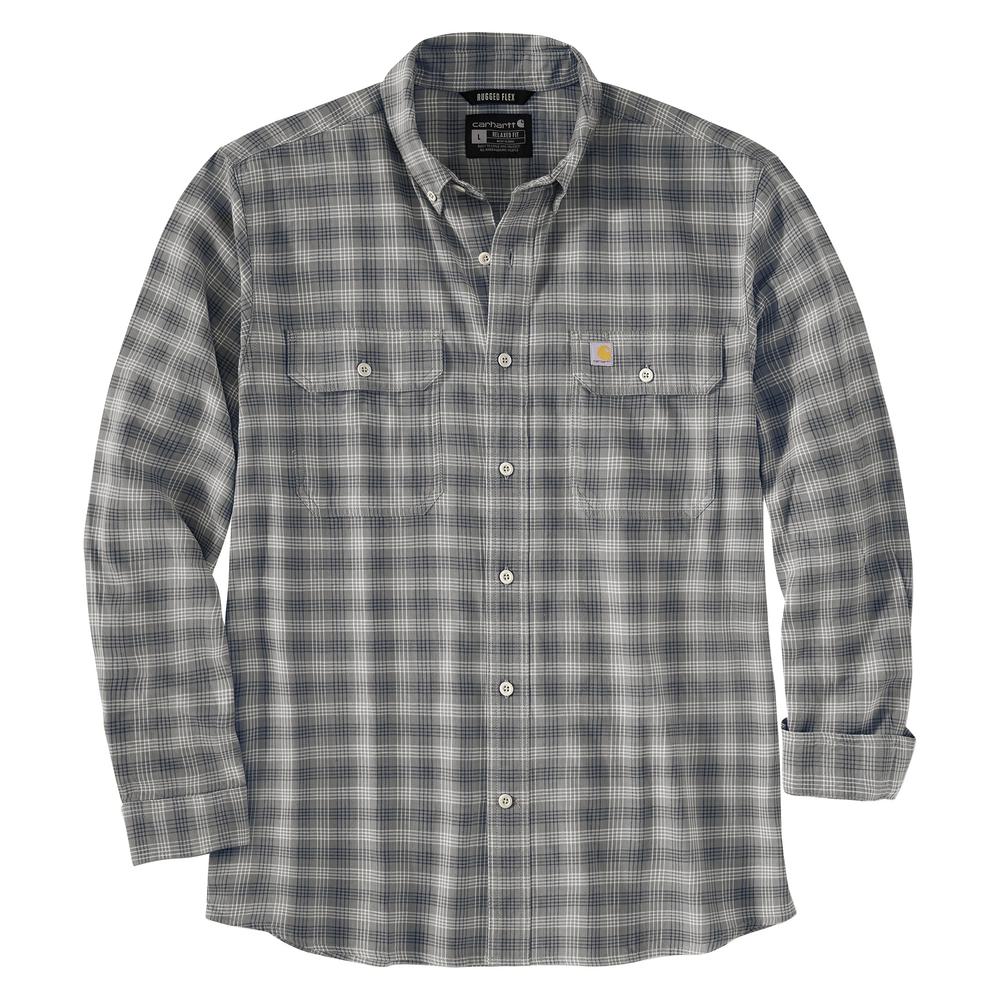 Made to move and stretch, this men's long-sleeve plaid shirt gives your team maximum mobility on the job. Built to last from lightweight stretch twill that's garment-washed for softness. Featuring a relaxed fit that offers space to move.
