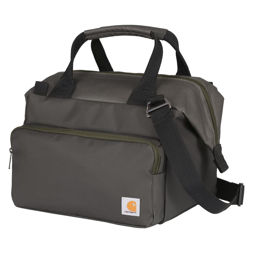 This Carhartt lunch cooler keeps food and beverages cold for 12+ hours. It's made with thick foam insulation and a PEVA lining for easy cleanup. A wide opening offers easy access to drinks and snacks. It comes equipped with a custom bottle opener and a padded shoulder strap that's removable and adjustable.